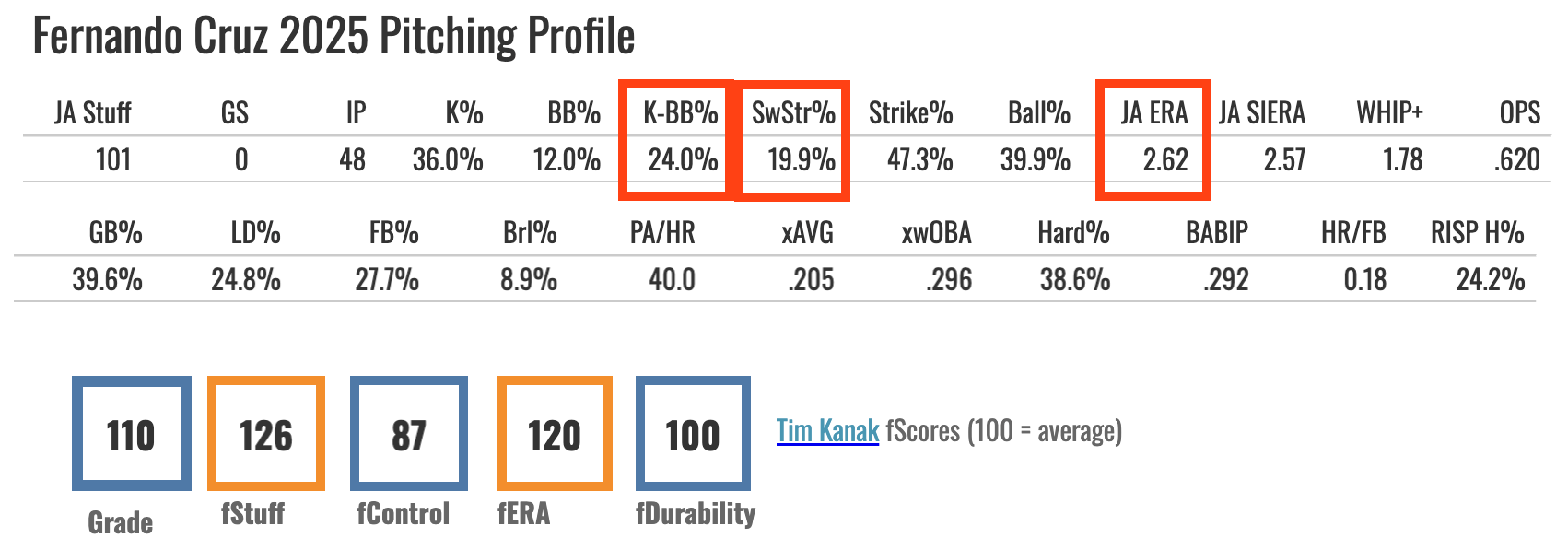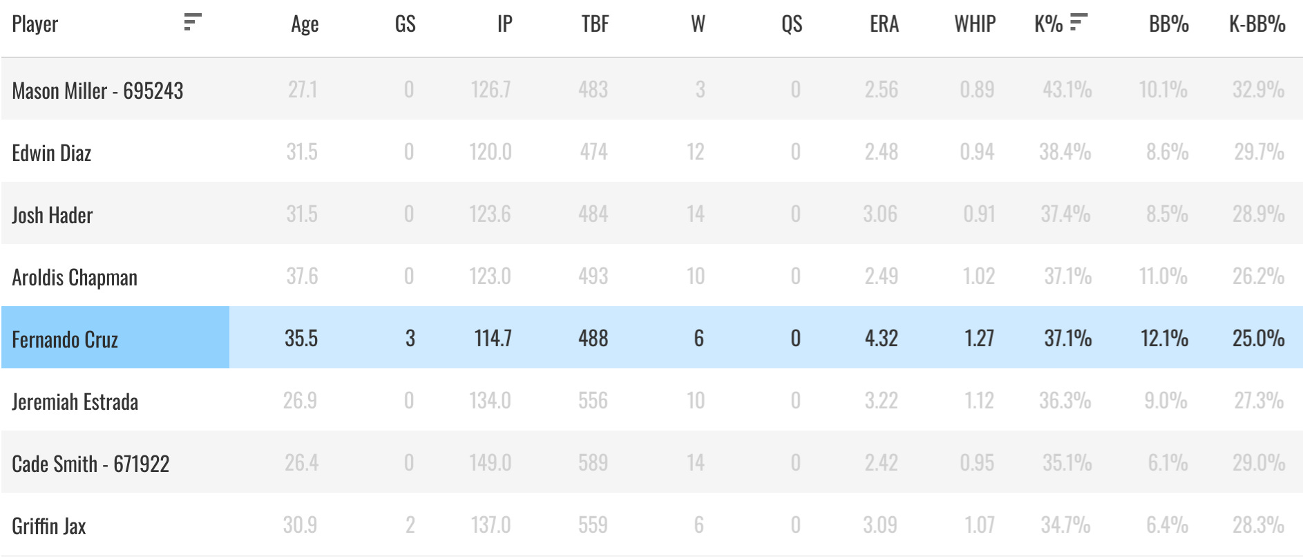 His 37% K% from 2024-2025 is the fifth-best in baseball (100 innings minimum):