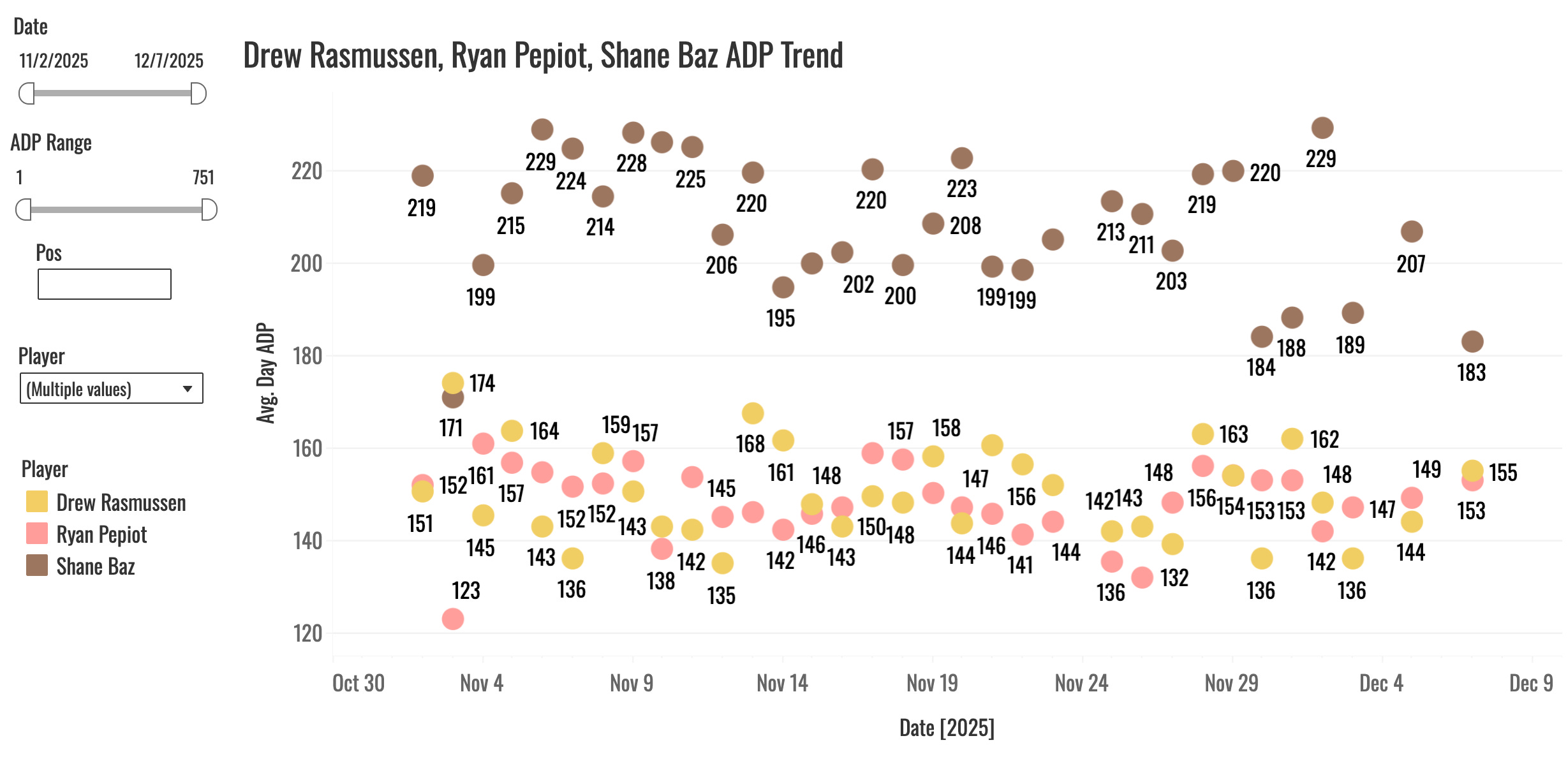 I don’t think you’re going to get a 26% K% from the guy. So he’ll finish around 150 strikeouts probably, but the ratios have always been good, and he has a great chance to post career-best volume. I’ll be drafting a lot of Rasmussen and some of his teammates on the pitching side of the ball this winter.