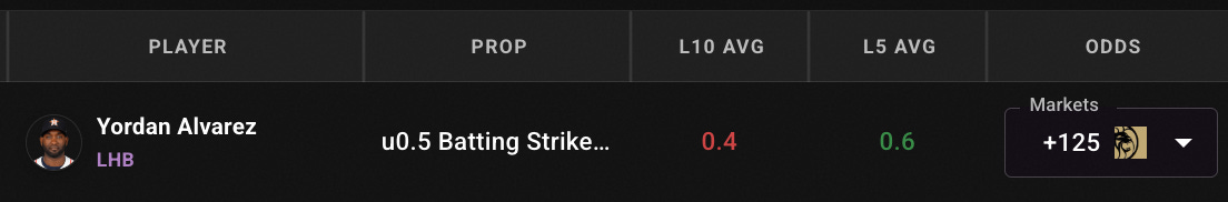 Yordan Alvarez Under 0.5 Strikeouts +125