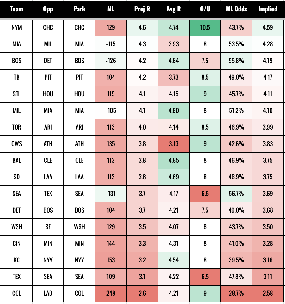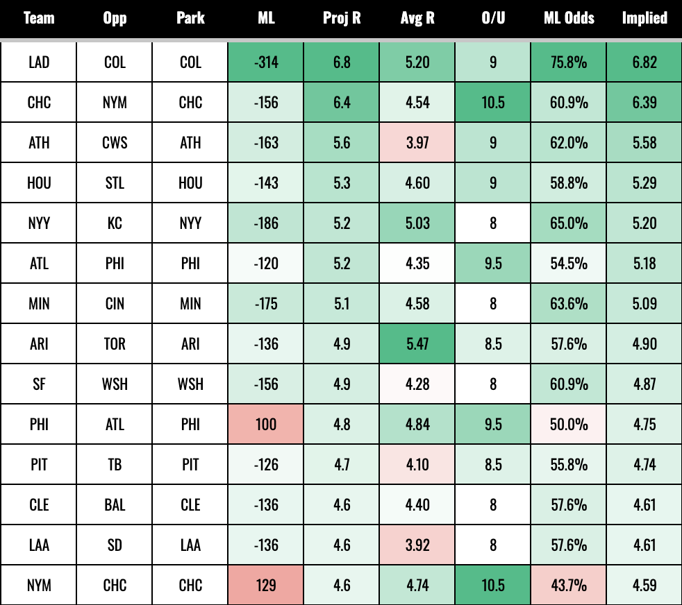 The Cubs are also expected to score a bunch in a windy game in Wrigley, but we don’t care about that because this article will be out after that one starts!