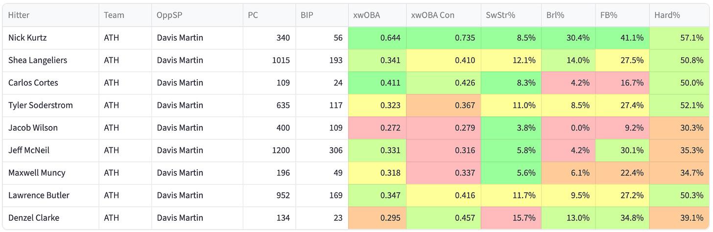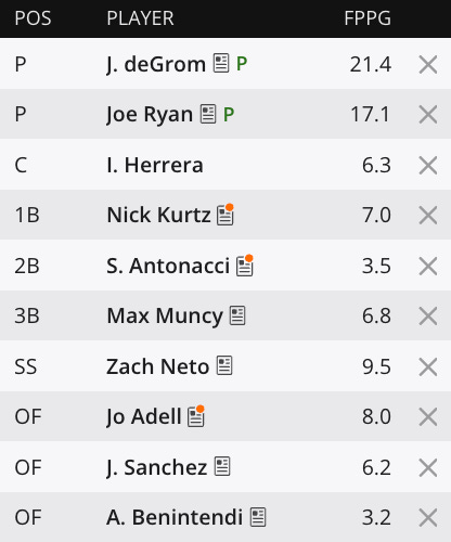 It’s a smallish sample size for Kurtz, but this is the exact type of pitcher he does insane damage against. Him and deGrom might be lock-buttons for me if I’m running out less than ten lineups.