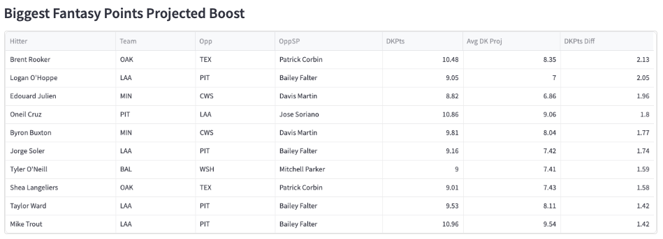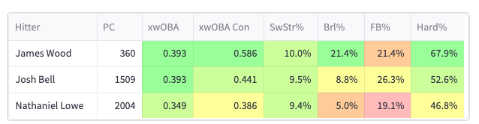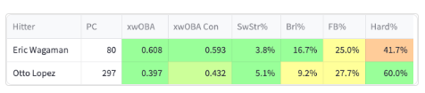 We have our new boy Eric Wagaman popping! He has a huge .608 xwOBA against pitchers like Nick Martinez, although that’s in a very short sample of just 80 pitches. Otto Lopez also makes the “best matchups” list.