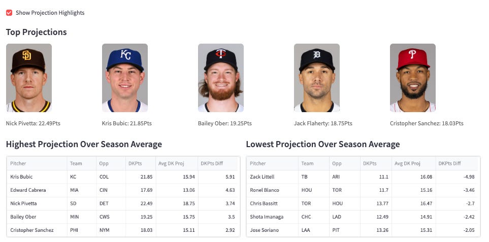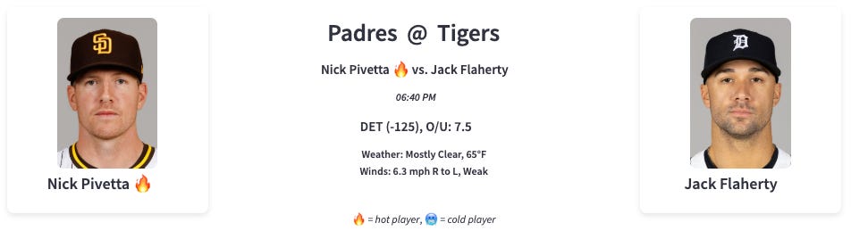 We’re looking at some strikeouts for Pivetta. The model is all about it with a 7.95 strikeout projection. The Tigers have trouble with that (24.9% collective lineup K%).
