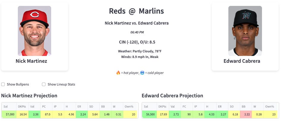 We see a lot of success on the pitching front last night with Lodolo vs. Meyer, but we have two pretty poor arms on this one. Cabrera always has that strikeout upside. Every once in awhile he’ll have some command and rack up a huge outing. I wouldn’t be shocked to see it tonight; the Reds are a beatable offense on the road, but you can never trust the great CaBBBBBBBBrera.