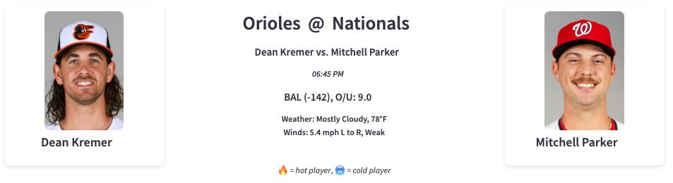 Dean Kremer has some trouble with left-handed hitters, so that’s good for the trio of Nats you see below.