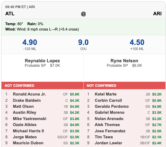 He is by far the best arm on the board. It could always go south, especially in the first week of the season. There’s a reasonable case for a fade, as there always will be for a highly owned player. Baseball players can always fail in one-game samples. But I’m locking Ragans in 100%, personally.