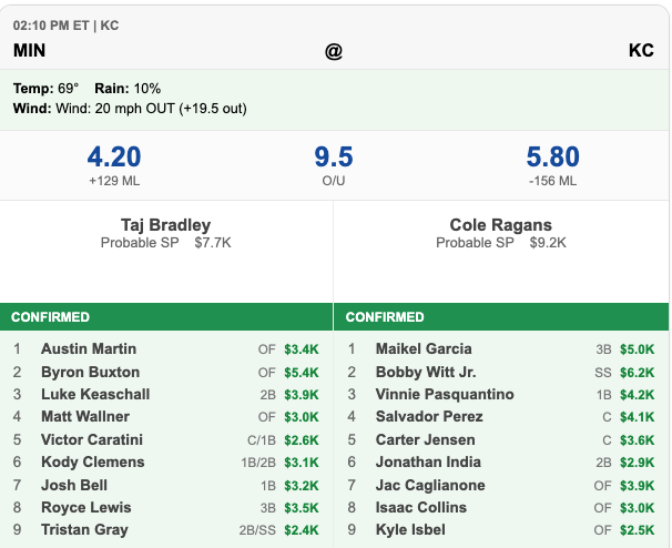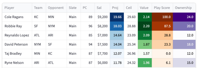 On the other side is the chalk pitcher in Cole Ragans ($9,200).