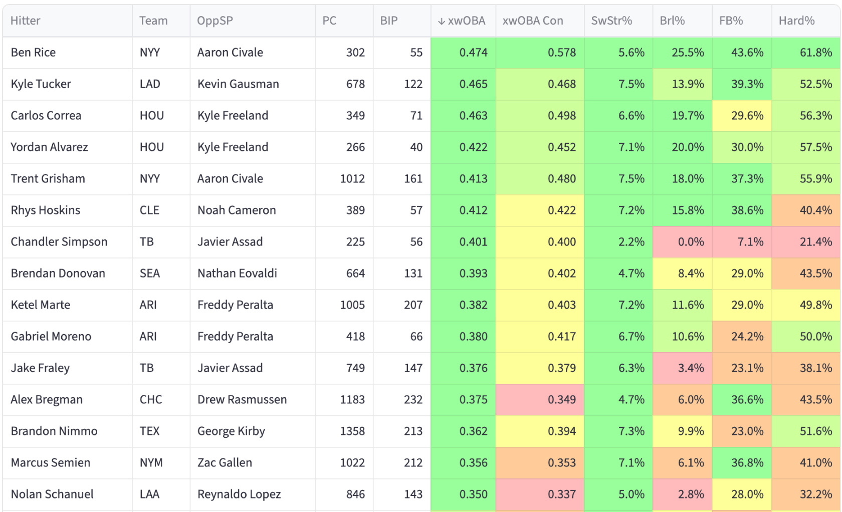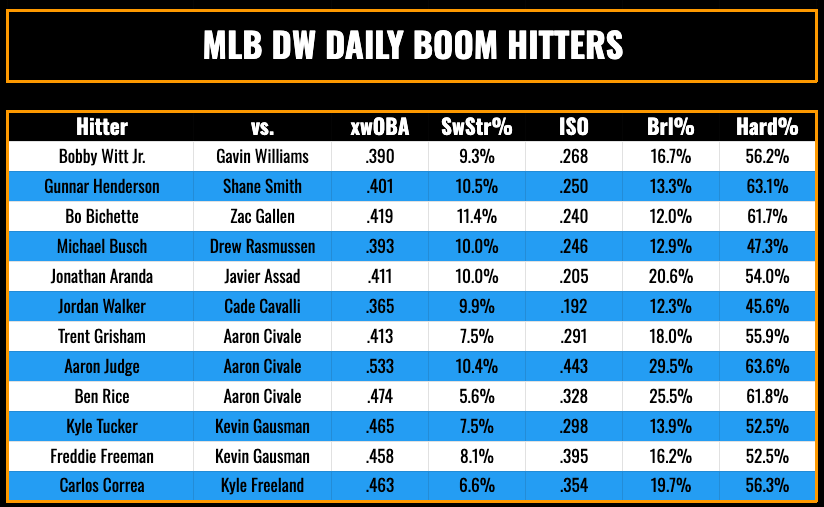 The Red Sox have won two games so far, and they have a high team K% of 26%. Misiorowski is too wild for cash game consideration on this slate, but for a low-owned tourney play he’s legit. There’s 10+ strikeout upside with him easily.