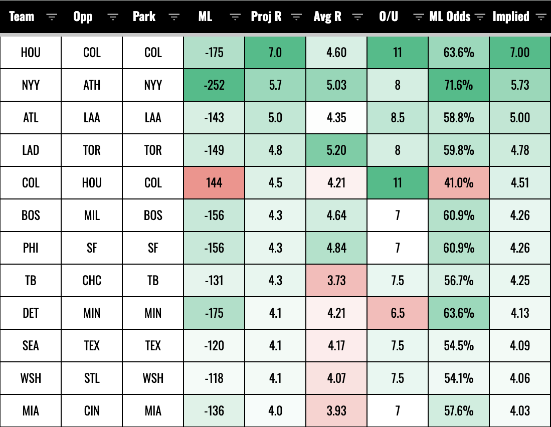 Nick Pivetta is the top value, but we’ve already talked about him.