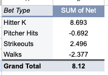 The best prop so far has been the hitter strikeouts: