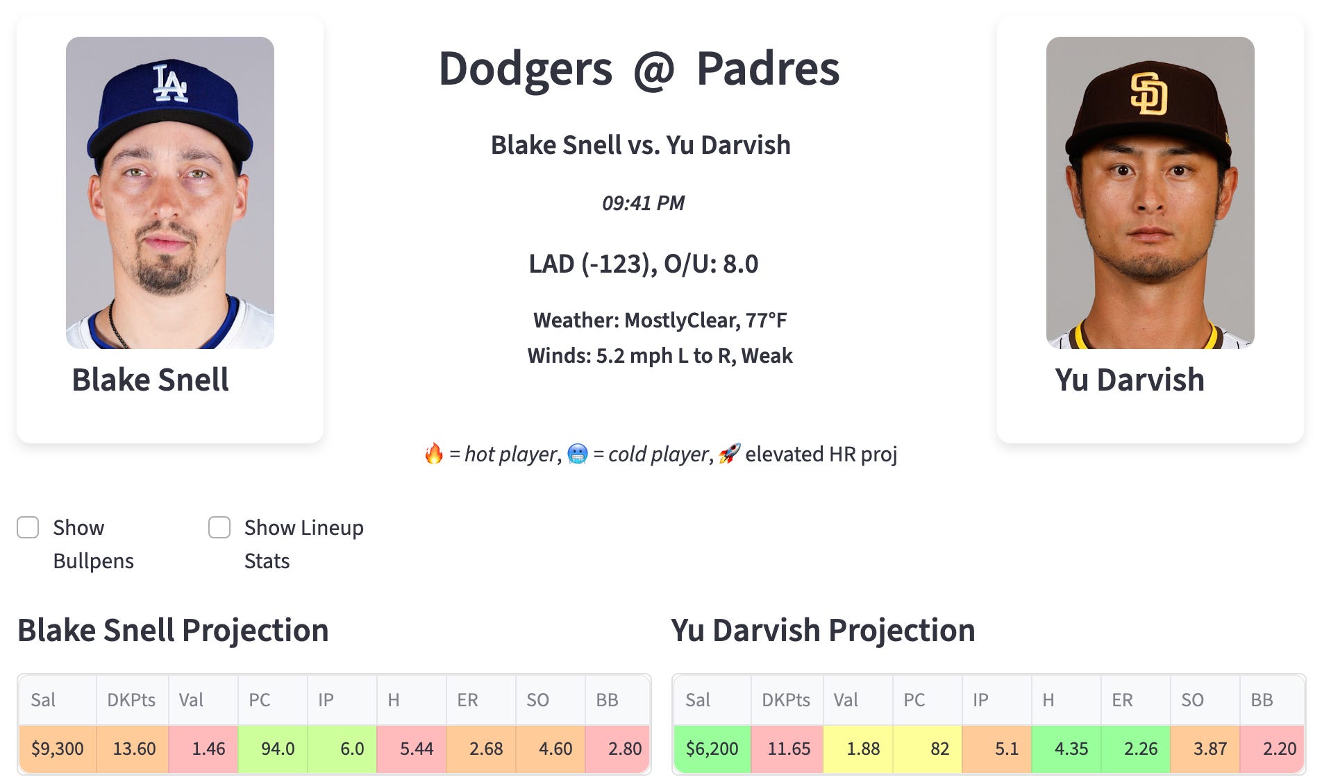 Again, this has nothing to do with the matchup or any advanced analytics or anything like that. It’s just coming from a fantasy baseball veteran who knows who Blake Baggy Eyes is. The outing where he completely blows it is coming at some point, and the string of good starts he puts together before it does make these prices pretty advantageous if you can predict it correctly.