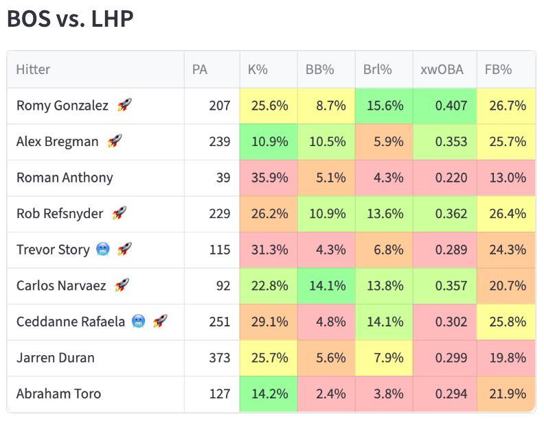 Bello has not been any luckier than Shota Imanaga, because nobody has. Imanaga has somehow put up a .191 BABIP, a 13% HR/FB, and an 8.5% RISP H%. The first and third number there put him right at the top of the league. And the Red Sox love to hit lefties.