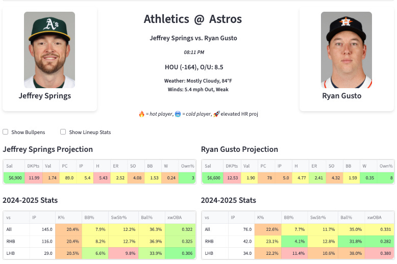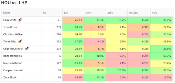 Houston is very right-handed. And they get the matchup at home against Jeffrey Springs.