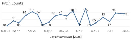 Insanely great spot for Kremer. Kremer isn’t great (3.83 JA ERA, 13% K-BB%), but he does throw a lot of pitches when he’s holding things together.
