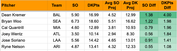 You aren’t catching anybody sleeping on this. Everybody knows the proper adjustments needed when a pitcher takes on the Rockies at home. But I have to point it out, right? Kremer is four points above his season average projection.