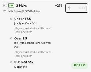 Joe Ryan isn’t a usual right-hander. He is pretty unique, so it’s tough to model his stuff properly. There’s just the deception there that is tough to quantify. But maybe the Red Sox are in a better spot than the sports books will think.