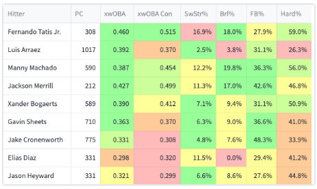 Fernando Tatis Jr., Manny Machado, and Jackson Merrill are in particularly good spots here. They have handled the stuff that Francis has marvelously well over the last few years:
