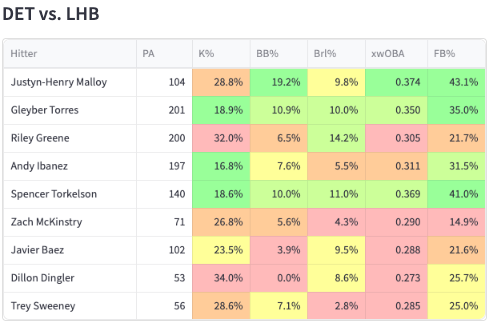 Spencer Torkelson is the lone “Best Matchups” qualifier here: