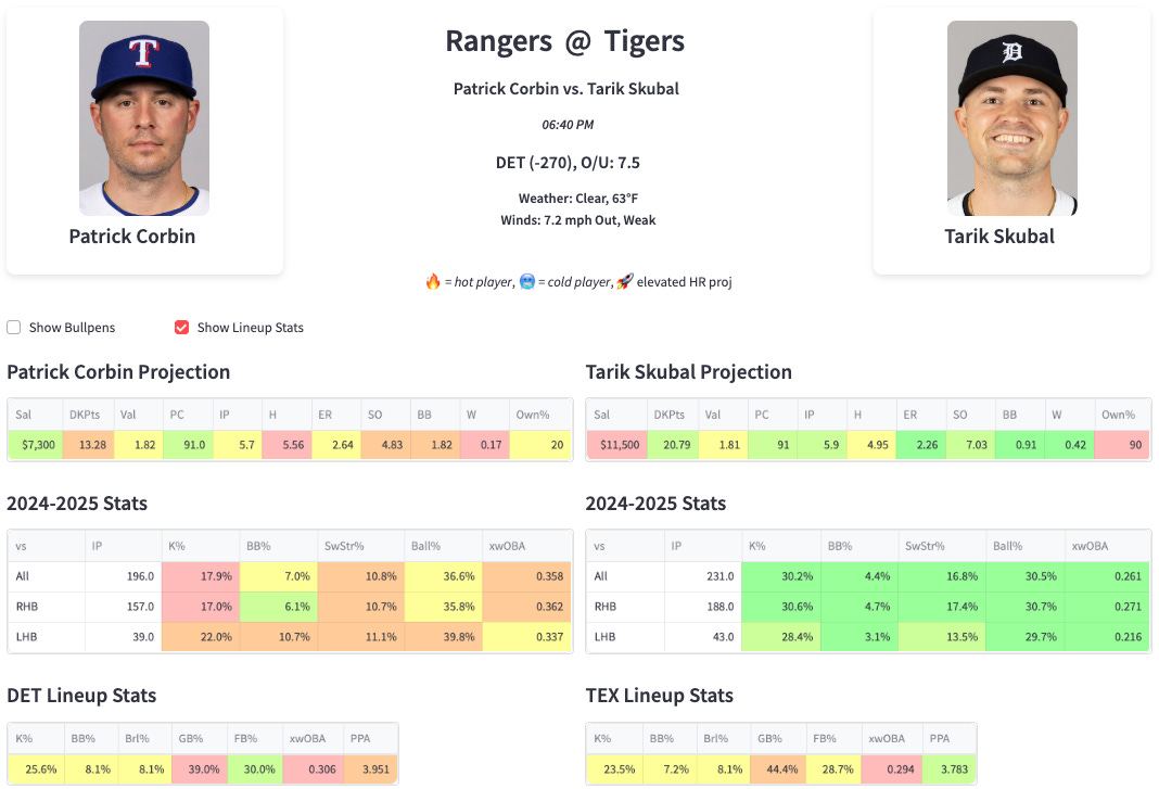I’m starting this massive slate preview by telling you that you should expect Tarik Skubal to do very well tonight.