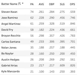 Here’s what Cleveland looks like in recent months against lefties (since July 1st)