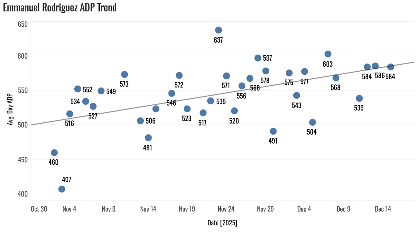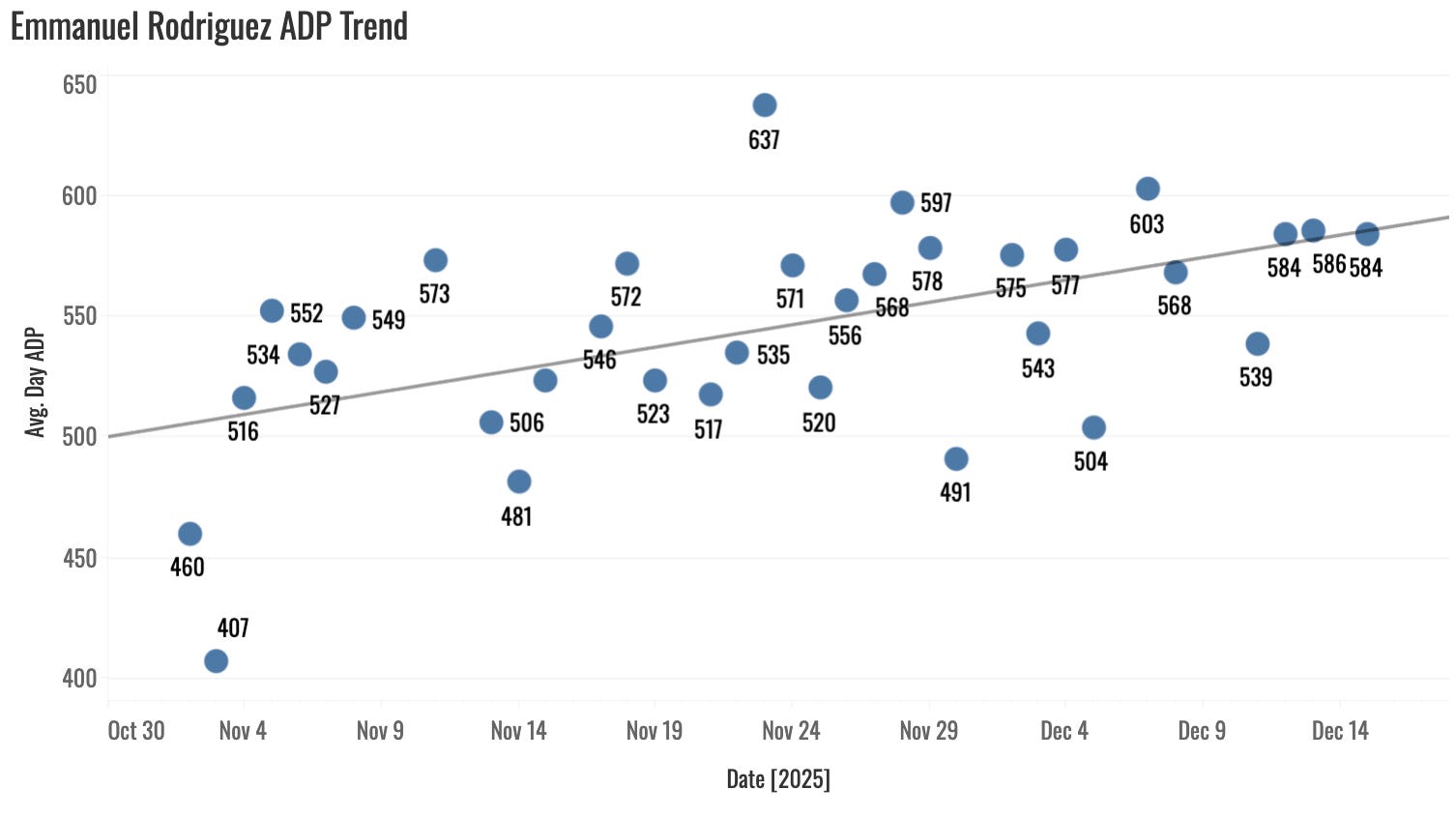 I think he’ll make the big league squad out of camp, and that brings some serious upside. He hit .290/.385/.530 with 40 bombs in 898 PAs from 2023-2024. The guy can rake. He needs to make the adjustments against Major League pitching and find regular reps, splitting time with Gabriel Moreno and hopefully playing a good bit as DH. But the upside is there for this price.
