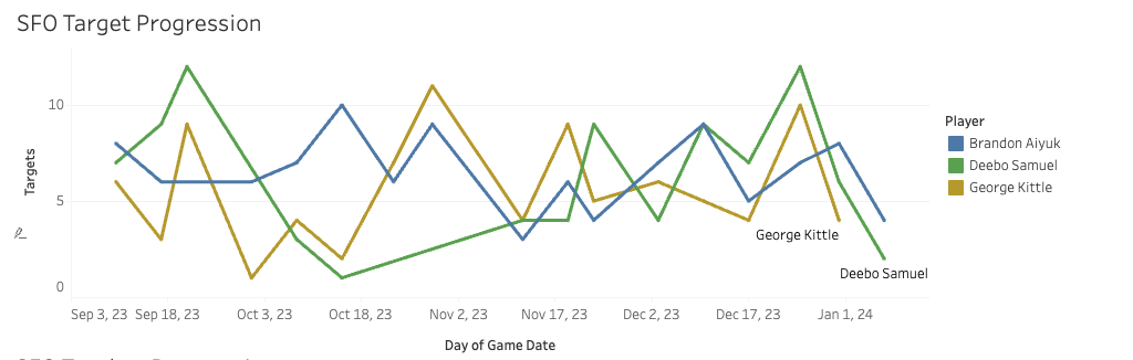 Brandon Aiyuk ($8,400): 22% Target Share, 38% Air Yard Share