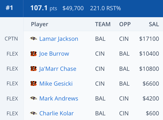 [NFL] Week 10 TNF Showdown LineupOur optimal lineup for tonight's NFL ShowdownJon ANov 08, 2024∙ Paid1ShareTo the NFL bros, I apologize - did not have time to get the Showdown analysis done today. But here’s the optimal lineup for tonight for those of you who have been using it.This post is for paid subscribersSubscribeAlready a paid subscriber? Sign in