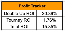 I forgot to put my two showdown lineups in last Monday Night, so the tracker hasn’t changed.