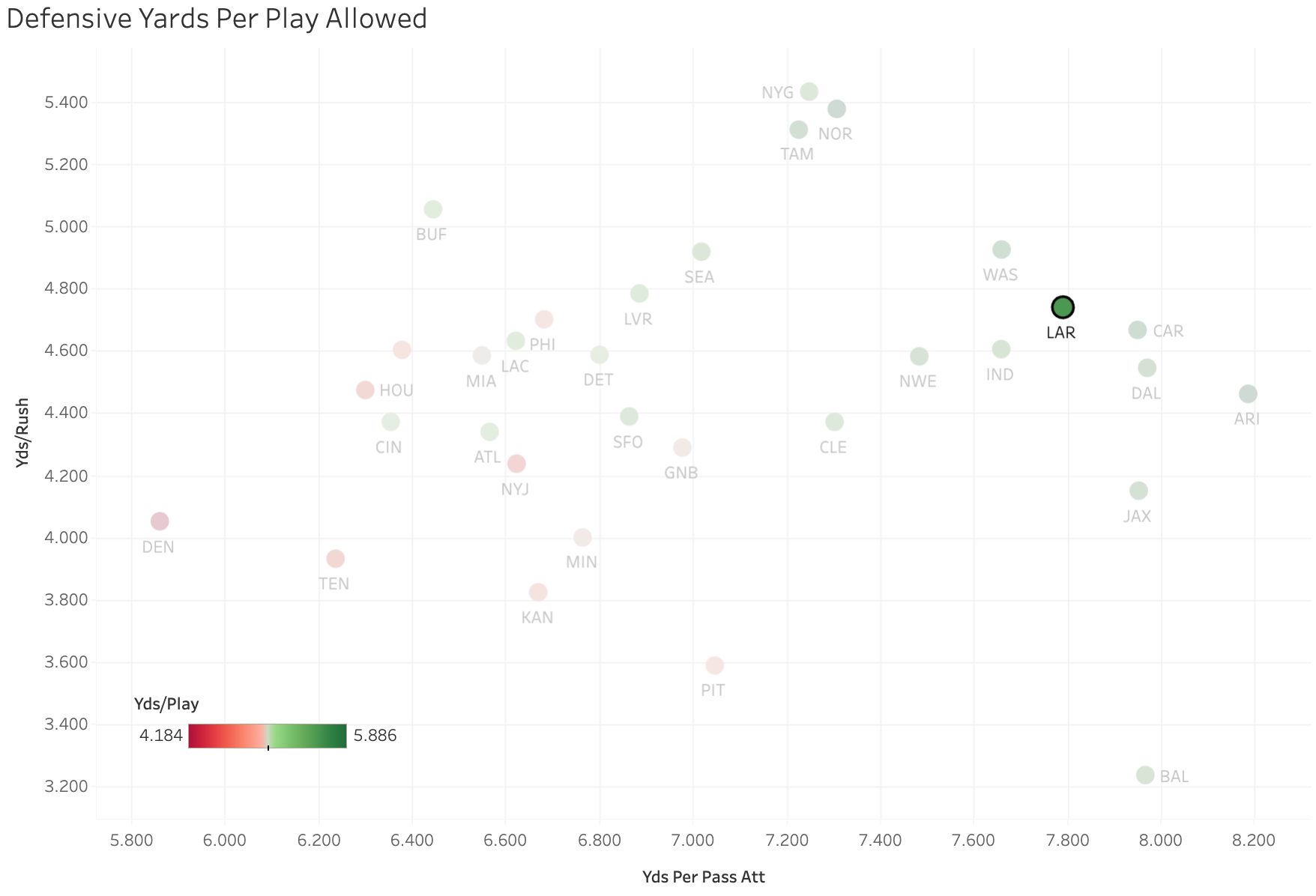 They’ve allowed the eighth-highest fantasy point scoring per snap and the eighth-most yards per play.