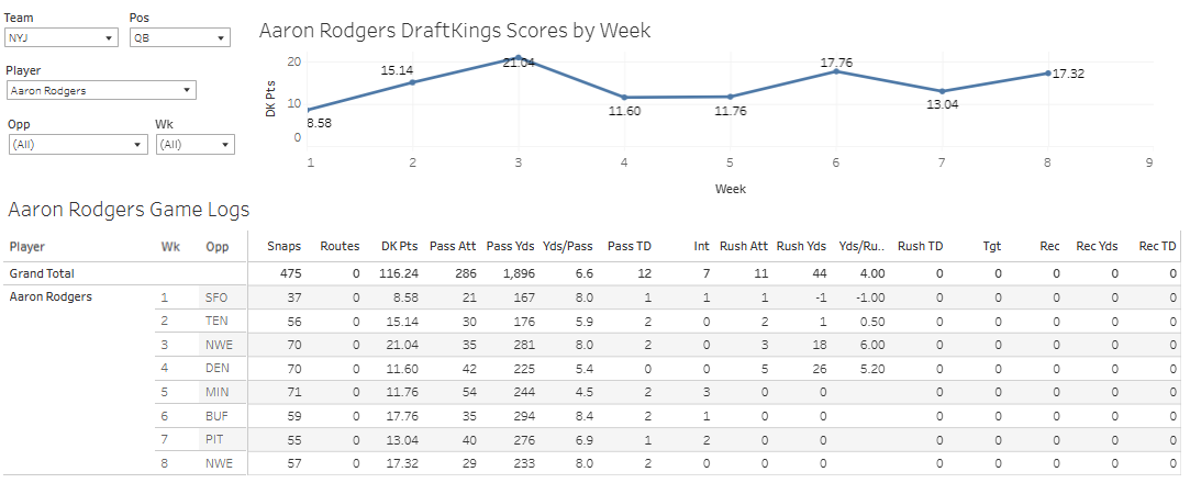 His numbers have been down without Nico Collins around, and now he’s up against the wall even more without Diggs either. The Texans will likely go run-heavy tonight, especially because the Jets are pretty tough to throw on. Rodgers is the preferred QB play for $1,000 cheaper - but both guys make sense, as usual, in the Showdown format.