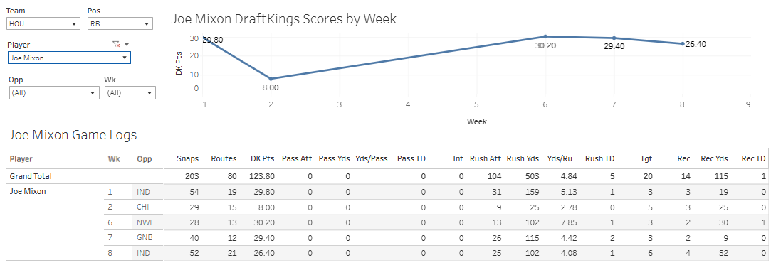 Joe Mixon ($11,000) is the most expensive player on the slate, but that’s because he’s been one of the most efficient fantasy point scorers in the league this year.