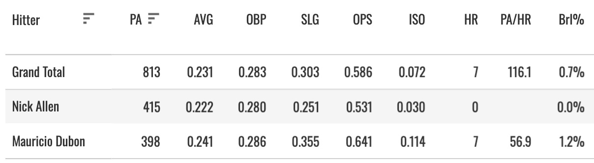 Nick Allen’s sub-600 OPS and a 0% Brl% tell you all you need to know. The bat is non-existent. He is going to give the Astros a great glove at shortstop, and that is mostly it. Maybe they can tap into something with the bat, but it doesn’t seem likely.