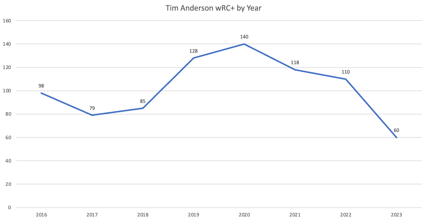 The reason to sign Tim Anderson (and to maybe draft him in deep fantasy leagues) would be that he clearly can’t repeat this 2023 season. He hit career-worsts or near career-worsts across the board (his 23.3% K% was his worst mark since 2018). Maybe that means that he just lost a bunch of skills, but I think it’s more likely that it was a combination of not being fully healthy, randomness, and maybe some mental stuff as well with the White Sox being in the cellar pretty much all year. He’s just 30 years old, as we noted, so you wouldn’t expect physical degradation at this point (although anything is possible).