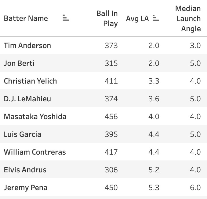 Maybe it was somewhat by design, but Anderson was by far the worst hitter in the league in terms of getting balls in the air.