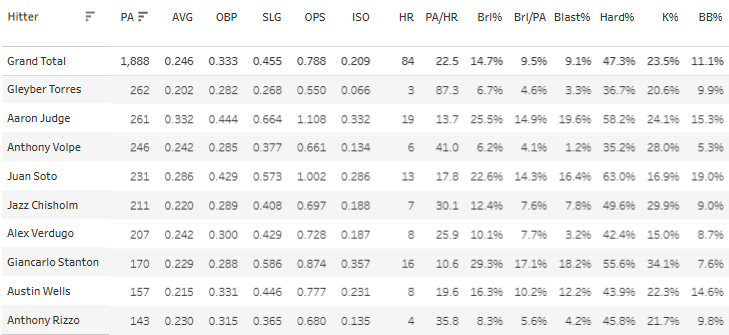 The key to beating the Yankees is somehow keeping that killer trio of Soto + Judge + Stanton off the board. There are not a ton of threatening hitters after them (although there aren’t many slouches either), but you can’t walk all three guys. Stanton being healthy and threatening this postseason has really changed things. You have to attack Soto and Judge; you really don’t have much of a choice.