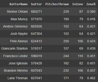 Ohtani has a 21% BB% this postseason and has seen just 38% of pitches against him be in the strike zone. That’s the lowest zone rate by far in the postseason if we look at hitters who have seen at least 150 pitches.