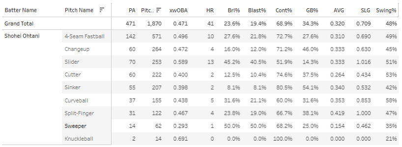 It’s extra bad news for Cole because Ohtani generated a .472 xwOBA against changeups and a .589 mark against sliders. Cole doesn’t have any good options.