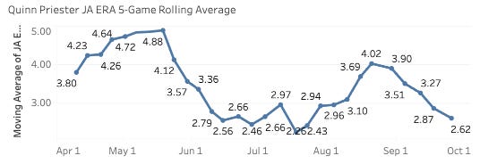 What a strange year it was for Quinn Priester. He was awful, and then elite, and then mediocre, and then really good again.