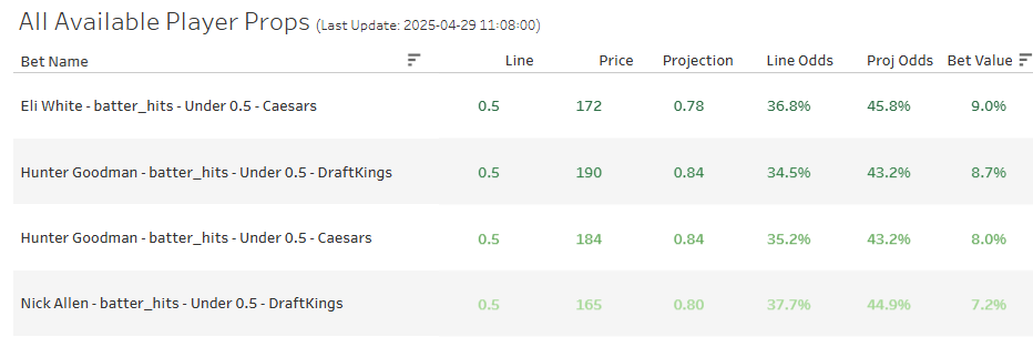 Projection Powered Player Props - April 29