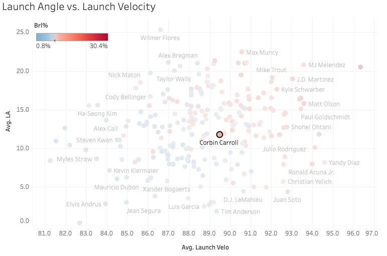 Corbin Carroll - 79 PA, 0.527 wOBA, 0.365 xwOBA, -0.162 Diff