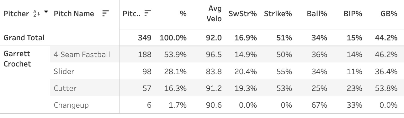 Garrett Crochet: 35.2 K%, 4.5% BB%, 44.2% GB%