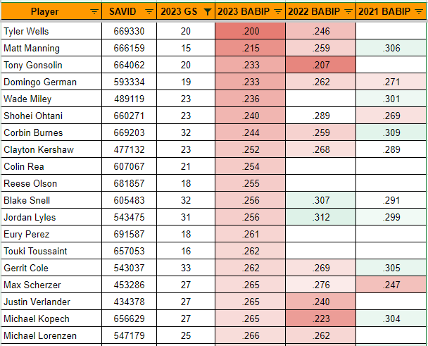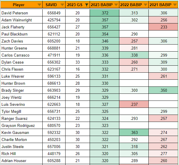 These are your pitchers that gave up extremely high BABIP in 2023.