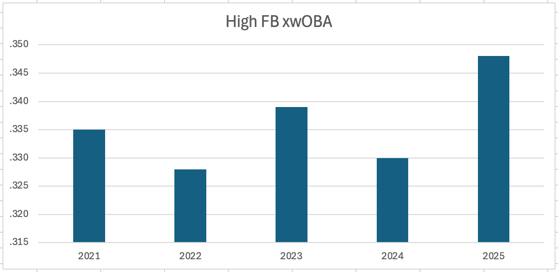 But guess what happened! in 2025, hitters figured it out. Here’s xwOBA on these same high fastballs:
