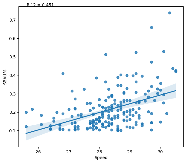 We have data on this these days, we can use sprint speeds to figure out who is fast and who is not. It’s not as strong a correlation as you’d think, here’s an ugly plot I wrote up as fast as I could with no regard to aesthetics: