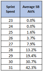 Significant climbs every time you add one mile per hour to the sprint speed. Since 7% was the league average last year, we can say we require at last a 27mph sprint speed to be a threat for steals, and every tick upward from there makes a big difference. So, best fast.