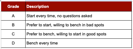 Most of the guys with B grades, you’re going to start darn near every time. You didn’t draft Jose Berrios in the top dozen rounds of your draft just to bench him when he faces the Orioles or something, most leagues don’t work like that. So I’m not really telling you to bench those guys in bad spots, it’s just that there’s a clear difference between them and the A-grade pitchers.
