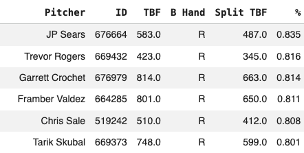 When you flip it around and see which pitchers faced the most lefties:
