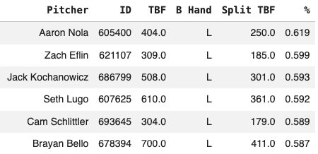 Sometimes, you’ll end up with a pitcher with pretty good overall numbers, but some concerning splits stuff under the hood. And that’s what I’m going to show quickly here.