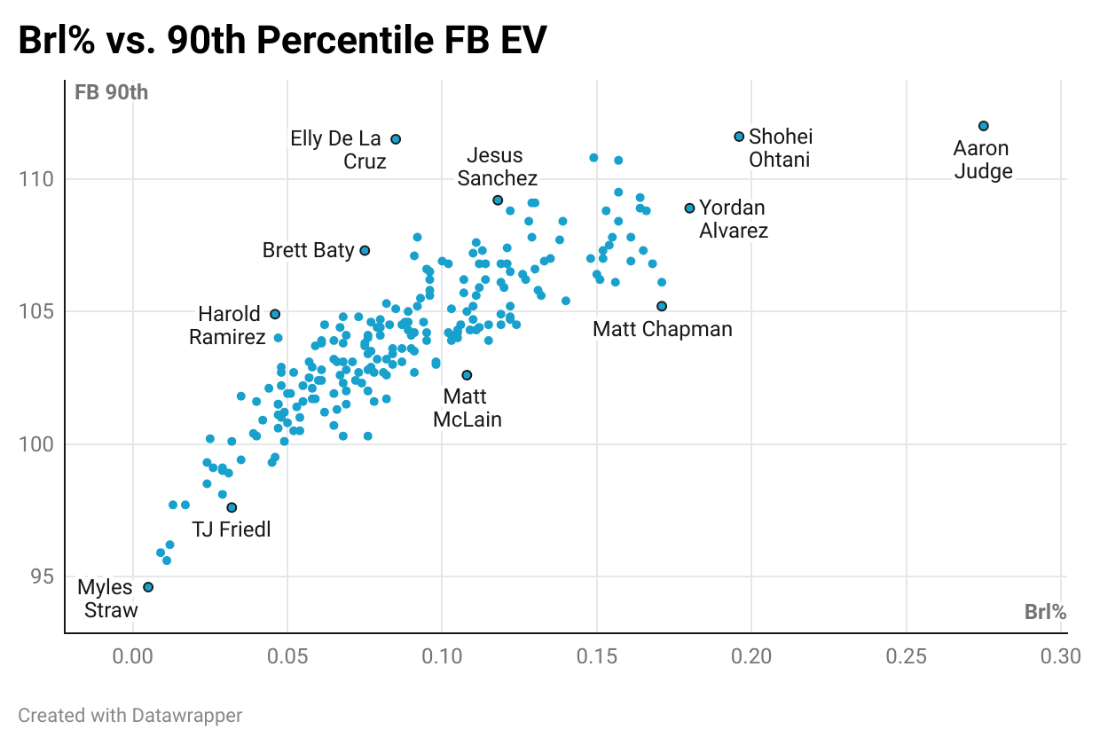 It makes a lot of sense that this metric would predict barrel rate well, because barrels are just very hard hit fly balls.