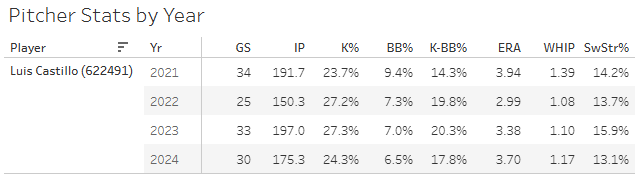 43 GS, 239 IP, 4.11 ERA, 1.29 WHIP, 25.7% K%, 7.8% BB%